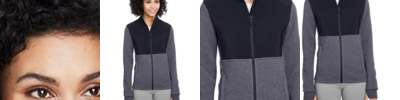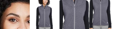 • Stretch fleece panels at underarm and side body
