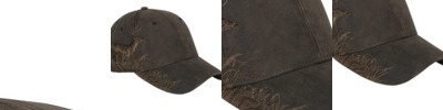 100% polyester; Structured front; Pre-curved visor; Hook and Loop backstrap; Detailed embroidered wildlife scene on right side; Dri Duck embossed leather patch left of back vent;