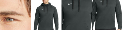 Nike has elevated the classic hoodie by improving this year-round essential with incredibly warm Therma-FIT fabric which breathes and manages moisture. The design includes a three-panel hood, front pouch pocket and open cuffs. The contrast heat transfer Swoosh design trademark is on the right chest. Made of 7.4-ounce, 100% polyester Therma-FIT fabric.